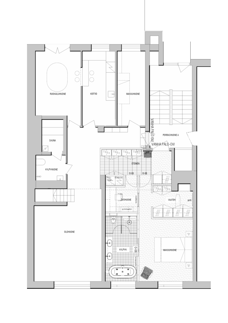 This comprehensive renovation project transforms two separate apartmentsin a 1955 residential building into a cohesive family home. The original 87.5 m² residence, designed by the acclaimed Finnish designer Ilmari Tapiovaara, was never intended to accommodate a family, which resulted in spatial and functional limitations. Our design approach sought to resolve these challenges while preserving the integrity of Tapiovaara’s vision.